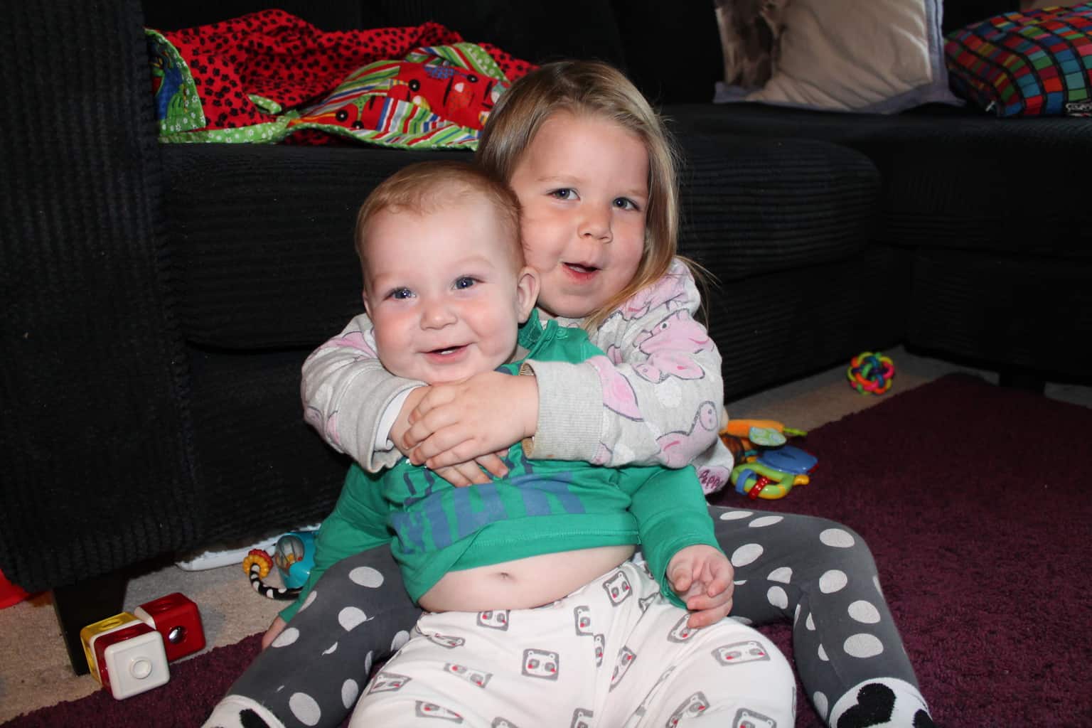 This month has been a nice one for these Siblings. Arlo is getting a lot more involved in toys (well grabbing for them, anyway) and Athena has started to allow him to sit near her and watch what she’s doing without shouting at him when he grabs something to chew on it. Lots of shared baths have been had now…
